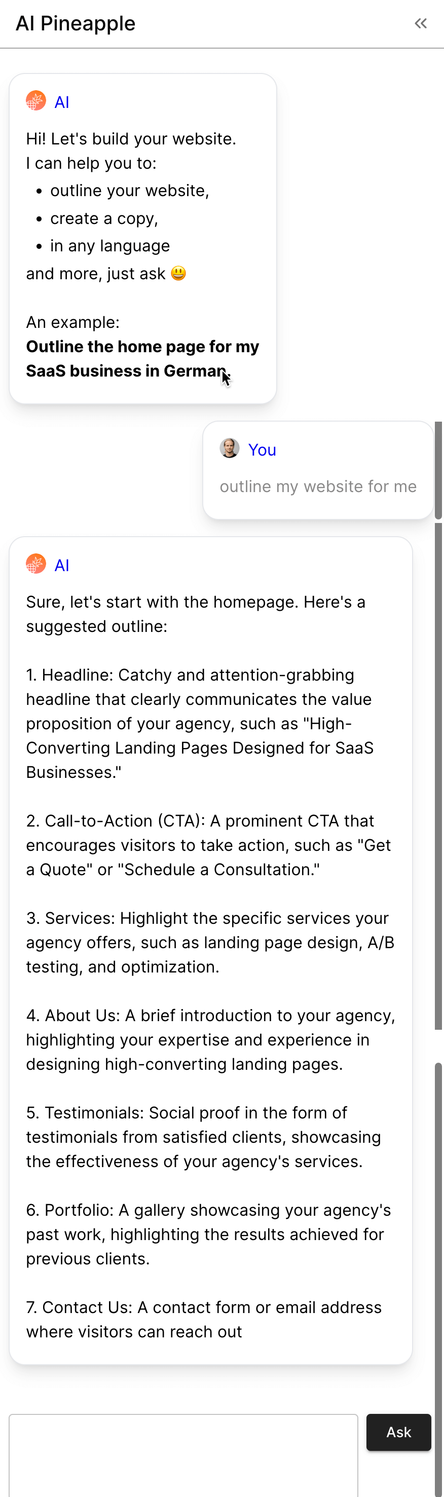 I will later add an article with a simple comparison of website builders. For now, I will use www.PineappleBuilder.com, which I've been using for many websites (this included). Let's go 🚀